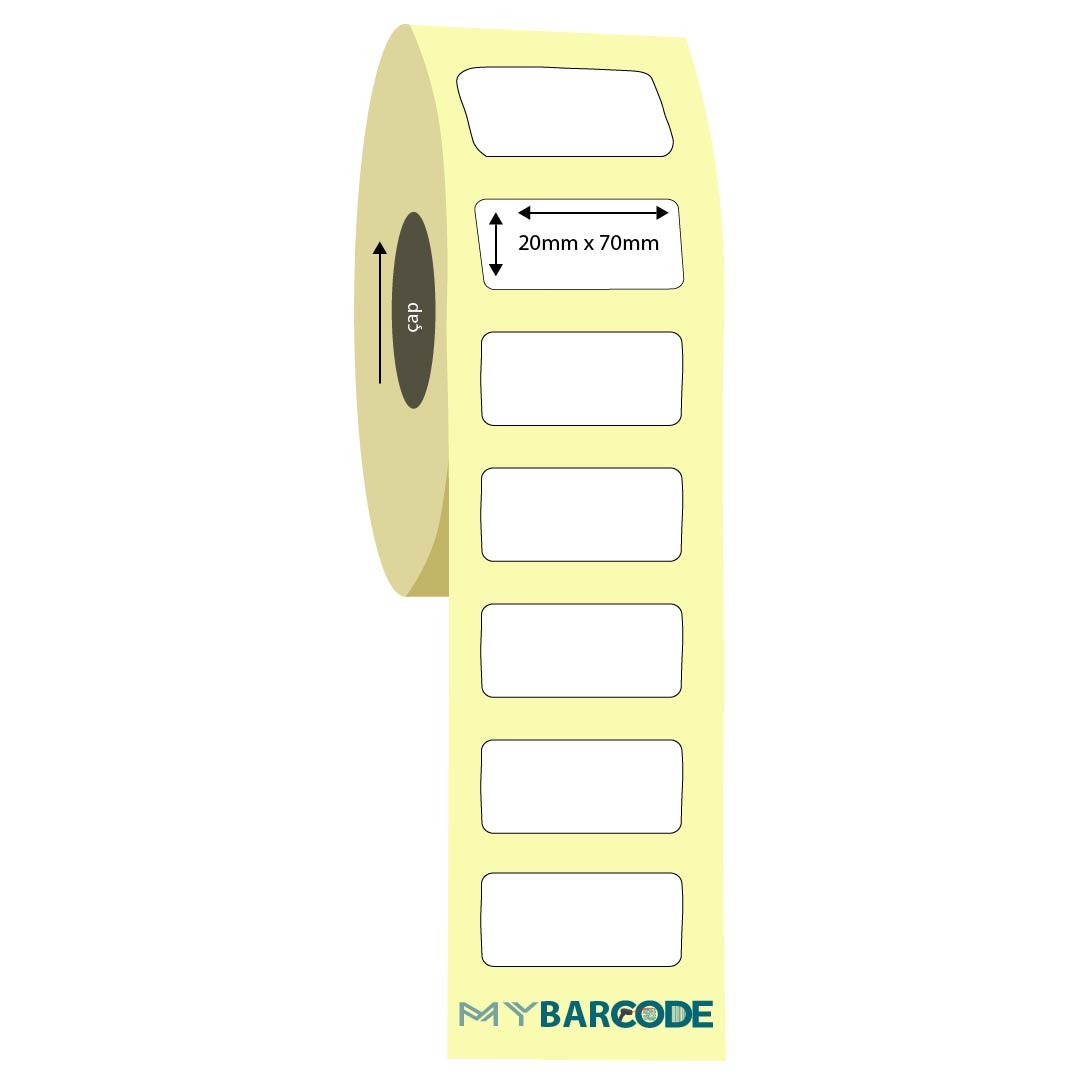 20mm x 70mm vellum etiket sudan, nemden etkilenir fakat güneş ışığı gibi hafif ısılardan kolay etkilenmez, kuşe etikete göre daha mat beyaz kağıt bazlı bir etikettir, kuşeye göre tek farkı üst yüzeyinde gözle farkedilemeyecek kadar ufak çukurların olmasıdır. Bu gözenekler 20 x 70 vellum etiketin üzerine ribonla yapılan baskının daha belirgin çıkmasına, ayrıca barkod okuyucuların daha net okumasına neden olur. 20mm x 70mm vellum etikete baskı yapabilmeniz için ribon kullanmak gereklidir. ” Özel siparişleriniz için müşteri temsilcimiz ile iletişime geçebilirsiniz.” E-posta: info@mybarcode.com.tr Tel: 0532 305 84 34