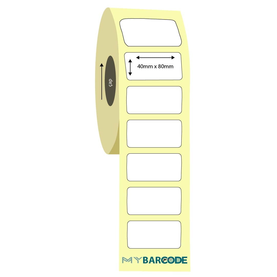 40mm x 80mm termal etiket ribonsuz baskı alabilme özelliği ile en ekonomik etikettir, direk termal / termal transfer teknikli barkod yazıcılar ile 40×80 etikete ribon kullanmadan baskı almak mümkündür. Genellikle kargo poşetleri, koli üstü etiketleri yada kısa vadede tüketilecek olan ürünlere yapıştırılan termal etiketler ısı, nem, su, gün ışığı ayrıca soğuktan etkilenen kağıt bazlı, 3-6 ay gibi kısa süreli kullanım ömürleri olan etiketlerdir.